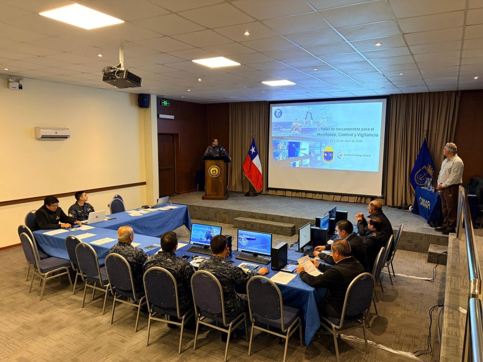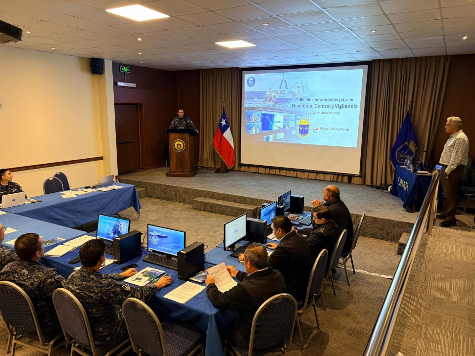 Con el objetivo de reforzar las herramientas tecnológicas para el control y vigilancia de los recursos marinos, el Departamento de Pesca de la Dirección de Intereses Marítimos y Medio Ambiente Acuático (DIRINMAR) organizó un taller de capacitación los días 21 y 22 de abril, enfocado en el uso de la plataforma Global Fishing Watch (GFW).
