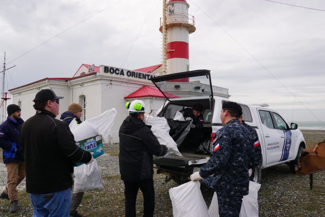 En el marco de las conmemoraciones del Día Internacional de Limpieza de Playas, servidores navales de la Capitanía de Puerto de Punta Delgada, junto con empresas que se encuentran en la jurisdicción, realizaron un operativo de limpieza de playa en el sector de Punta Delgada, Primera Angostura del Estrecho de Magallanes.
