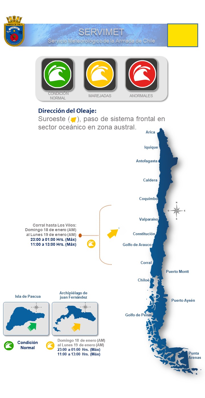 Aviso de Marejadas sector Corral hasta Los Vilos y Archipiélago de Juan Fernández.