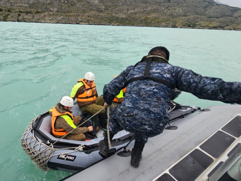 La Capitanía de Puerto de Puerto Natales dispuso el zarpe Lancha de Servicios de Rescate, LSR-4422 “Arcángel para ir al encuentro de los tres hombres que fueron socorridos por una lancha pesquera.