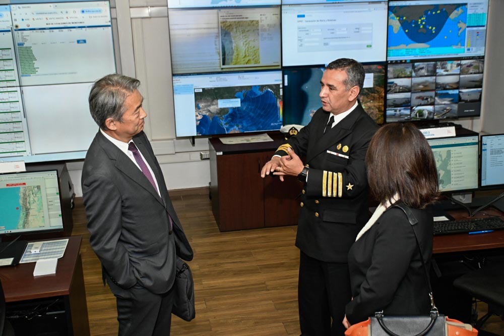 El miércoles 10 de diciembre, el Excelentísimo Embajador Extraordinario y Plenipotenciario del Japón Sone Kenko visitó las dependencias del Servicio Hidrográfico y Oceanográfico de la Armada (SHOA), acompañado por el Agregado de Defensa del Japón en Chile, Teniente Coronel Kengo Narita y delegación de la Embajada.