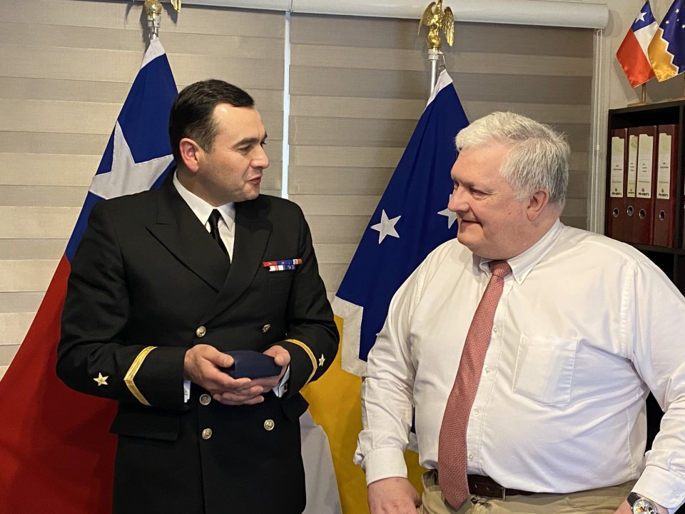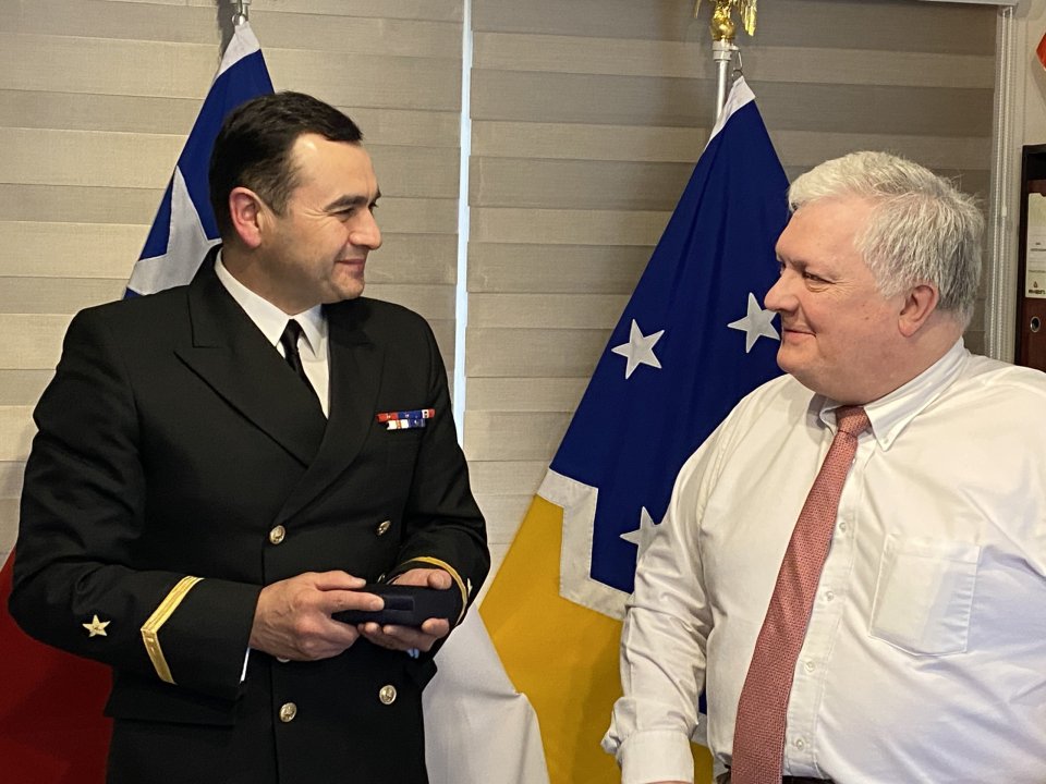 Senador Alejandro Kusanovic entregó reconocimiento al Suboficial Mayor Roberto Araneda Torres en Punta Arenas.