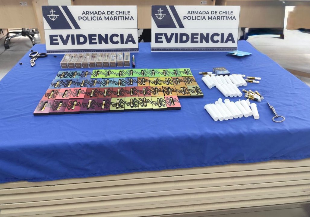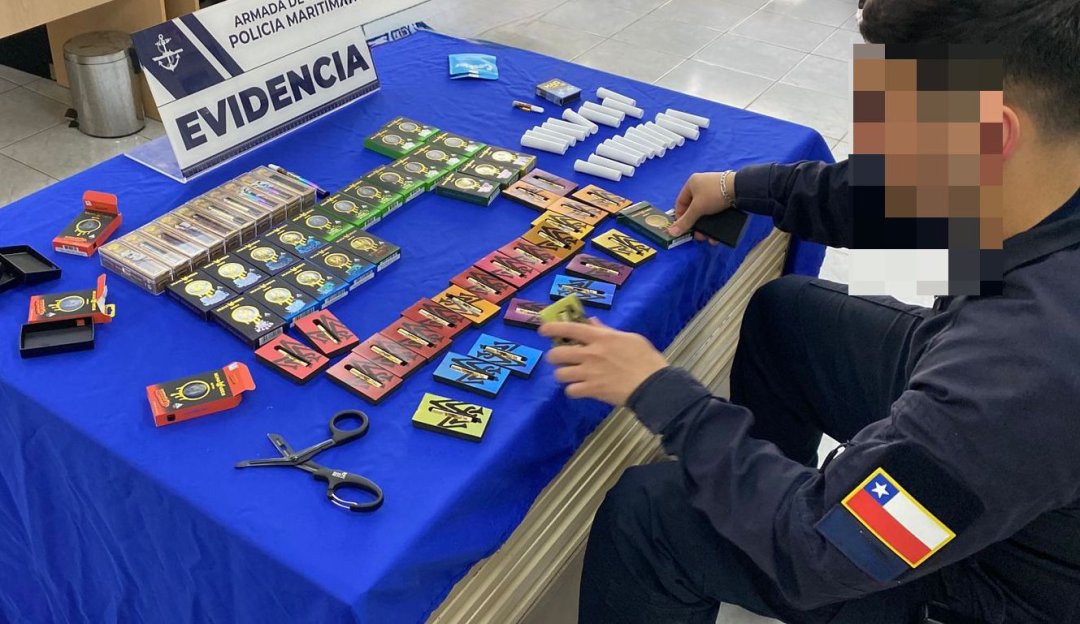 El personal de la Capitanía de Punta Arenas y su binomio canino, efectuaron un control de identidad investigativo y revisaron equipajes de bodega y vestimentas siguiendo los protocolos, hallando 70 cartuchos con esencia de cannabis. Asimismo, la prueba de campo confirmó positivo para cannabis sativa, incautándose 1.038 gramos, valorados en casi tres millones de pesos.