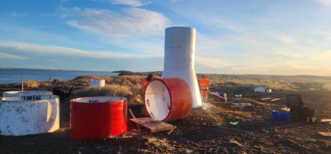 Entre el 11 al 17 de octubre, superando condiciones meteorológicas extremas, los especialistas en Faro del Centro Zonal de Señalización Marítima de Punta Arenas, culminaron la renovación de tres torres de ayuda a la navegación en el área de bahía Azul sector de Primera Angostura, en la zona norte del Tierra del Fuego.